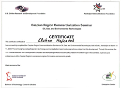Certificates / Seminar «The Caspian region commercialization seminar on oil, gas, and environmental technologies». - Azerbaijan